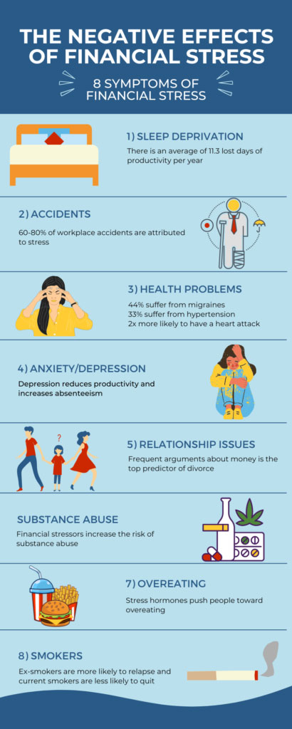 Without the right relief strategies in place, a vicious cycle of financial and physical stressors affecting one another can form. Creating a plan to properly address your overall well-being can help you understand how this cycle works and how financial stress and physical unfitness are interconnected.
